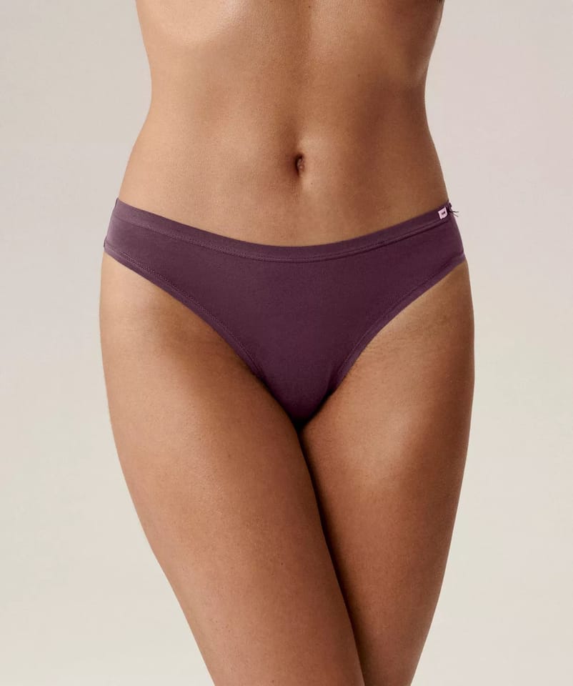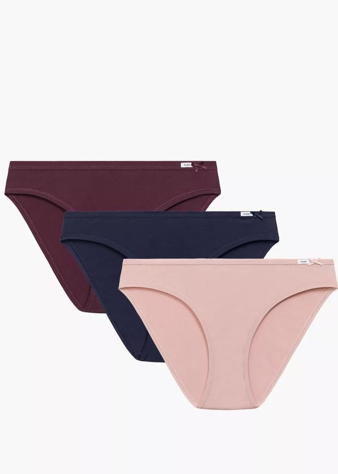 Figi damskie o kroju bikini z niskim stanem z miękką i nieuciskającą lamówką, ozdobioną subtelnym logo Atlantic, głębszymi wycięciami po bokach, optycznie wydłużającymi nogi oraz zabudowanym tyłem. Pakowane po 3 szt. Skład: 95% bawełna, 5% elastan.