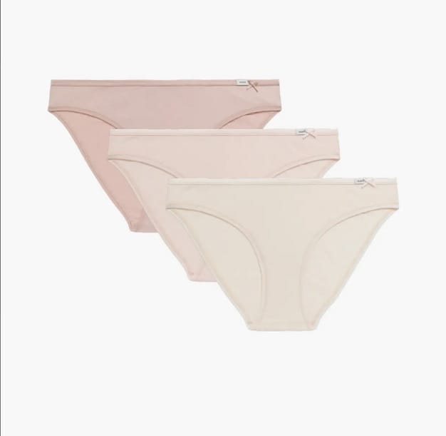 Figi damskie bikini pakowane po 3 szt. Odsłonięte boczki, niska talia i subtelna kolorystyka. Figi wykonane z miękkiej, wygodnej dzianiny.Skład: 95% bawełna, 5% elastan.