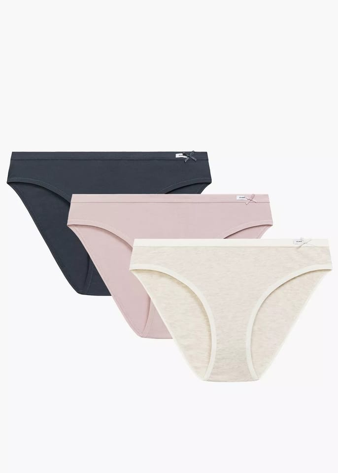 Figi damskie o sportowym kroju ze standardowej wysokości stanem, wykończonym miękką, nieuciskającą lamówką ozdobioną logo Atlantic i małą kokardką z boku oraz wąskimi bokami. W opakowaniu 3 szt. Skład: 95% bawełna, 5% elastan.