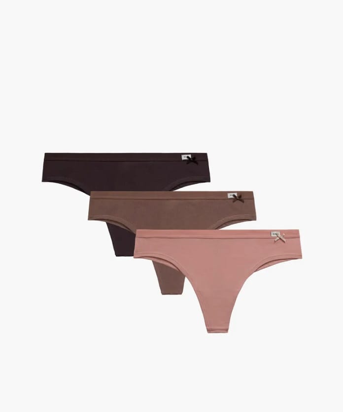 Stringi damskie typu brazil pakowane po 3 szt. Figi wykonane z miękkiej dzianiny gwarantują dobre dopasowanie do ciała. Skład: 95% bawełna, 5% elastan.