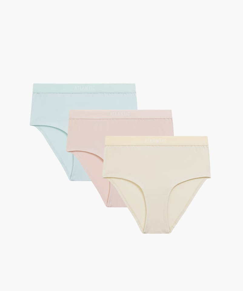 Majtki o sportowym charakterze mają wysoką talię (do pępka), wykończoną miękką gumą zewnętrzną z logo Atlantic, szerokie boki oraz zabudowany tył. Miękki materiał i subtelna kolorystyka.Skład: 95% bawełna, 5% elastan.