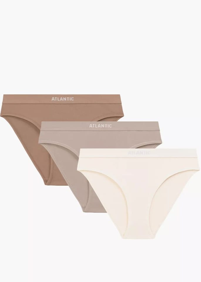 Sportowe majtki odznaczają się wąskimi bokami, lekko odsłaniającym pośladki tyłem i średniej wysokości talią, wykończoną szeroką, połyskującą i nieuciskającą ciała gumą z dużym napisem ATLANTIC. W opakowaniu 3szt. Skład: 95% bawełna, 5% elastan.