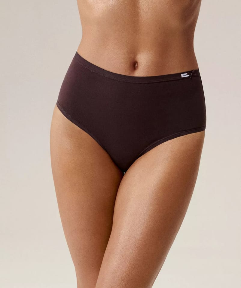 Majtki mają wysoki stan, wykończony miękką i nieuciskającą lamówką z logo Atlantic oraz małą kokardką, szerokie boki i zabudowany tył. W opakowaniu 3 szt. Skład: 95% bawełna, 5% elastan.
