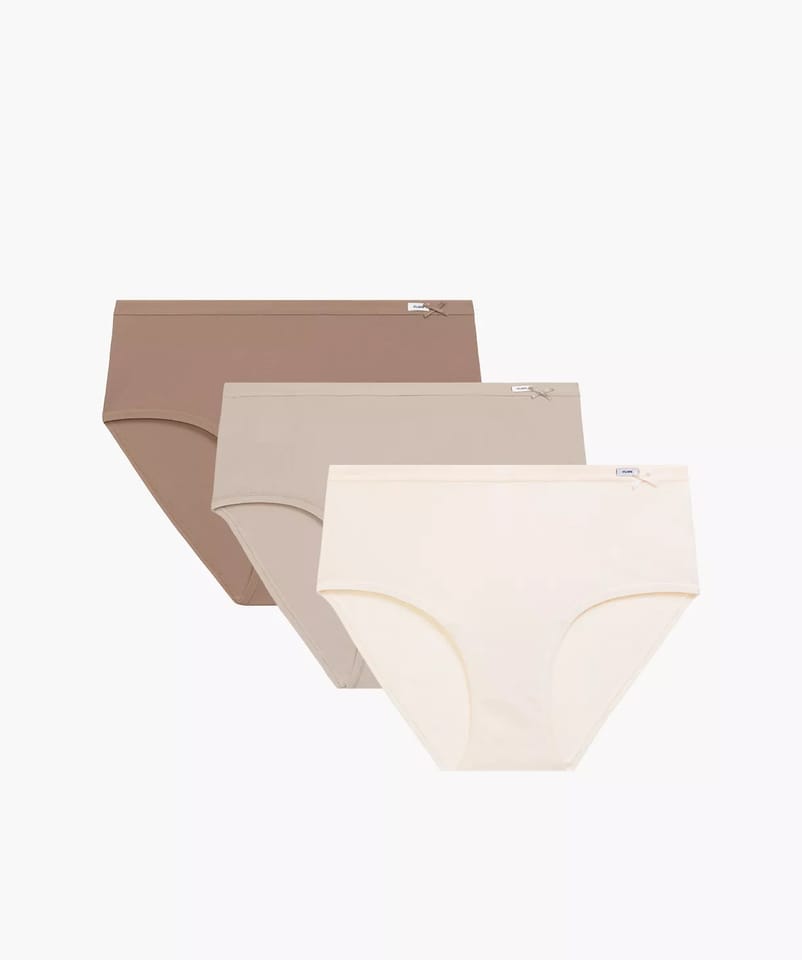 Majtki mają wysoki stan, wykończony miękką i nieuciskającą lamówką z logo Atlantic oraz małą kokardką, szerokie boki i zabudowany tył. W opakowaniu 3 szt. Skład: 95% bawełna, 5% elastan.