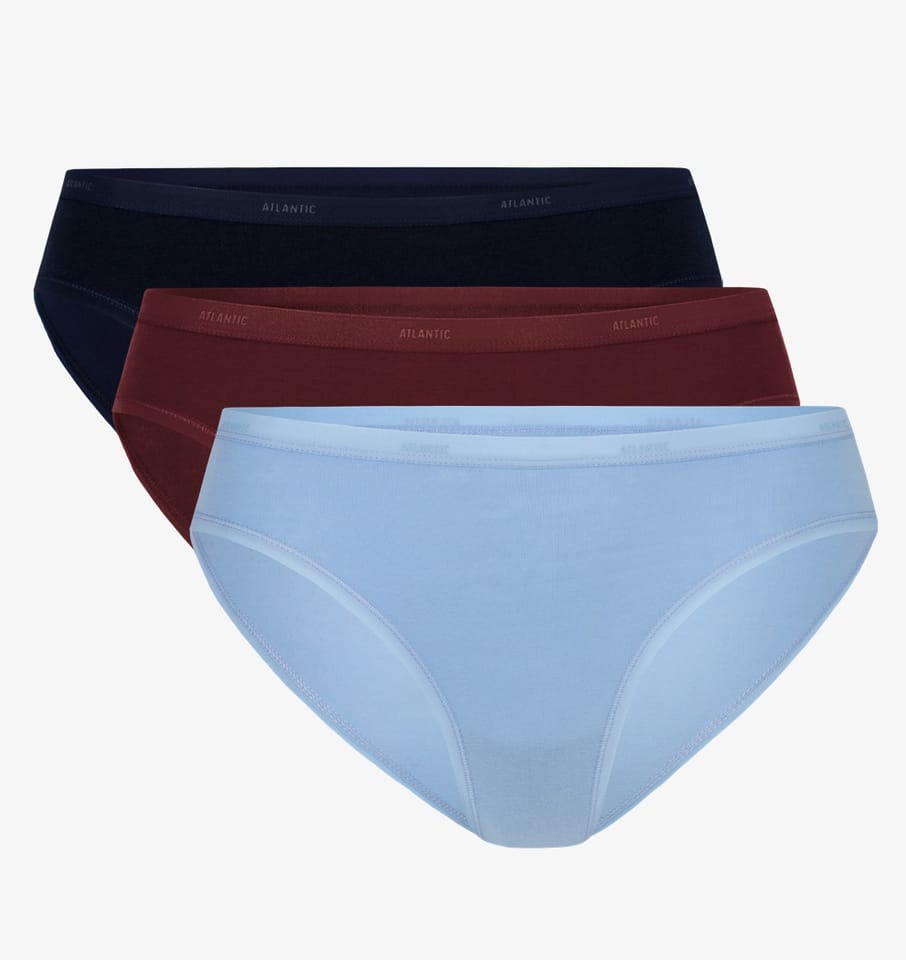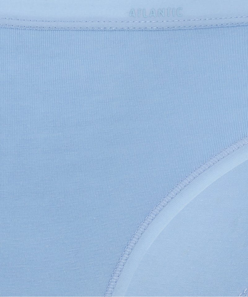 Majtki o kroju bikini mają niską talię, zaznaczoną nieuciskającą ciała lamówką, dość głęboko wycięte boki. Figi wykonane z dzianiny cotton stretch, która jest połączeniem miękkiej bawełny z rozciągliwym elastanem. Skład: 95% bawełna, 5% elastan.