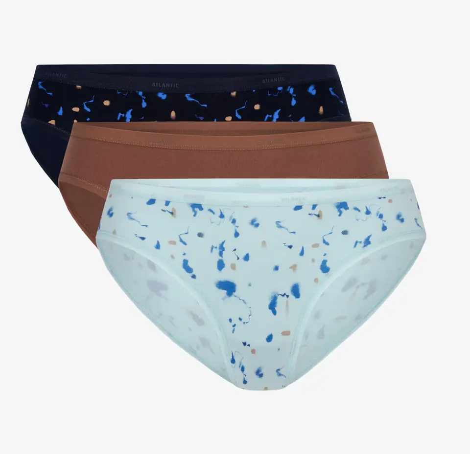 Figi o sportowym kroju. Niska talia, dość głęboko wycięte boki. Figi wykonane z miękkiej bawełny z rozciągliwym elastanem. Pakowane po 3 sztuki. Skład: 95% bawełna