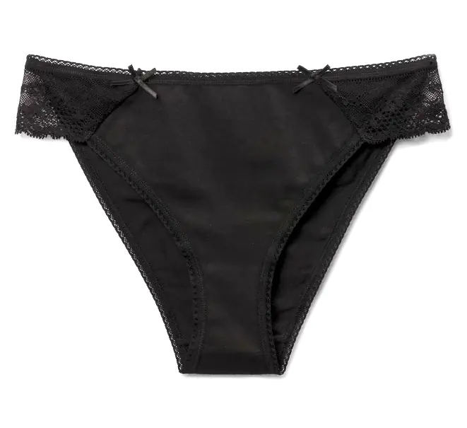 Figi damskie z eleganckimi wstawkami z koronki po bokach. Optycznie wydłużają nogi. Posiadają podwyższony stan. Skład: 97% bawełna, 3% elastan. Pakowane po dwie sztuki.