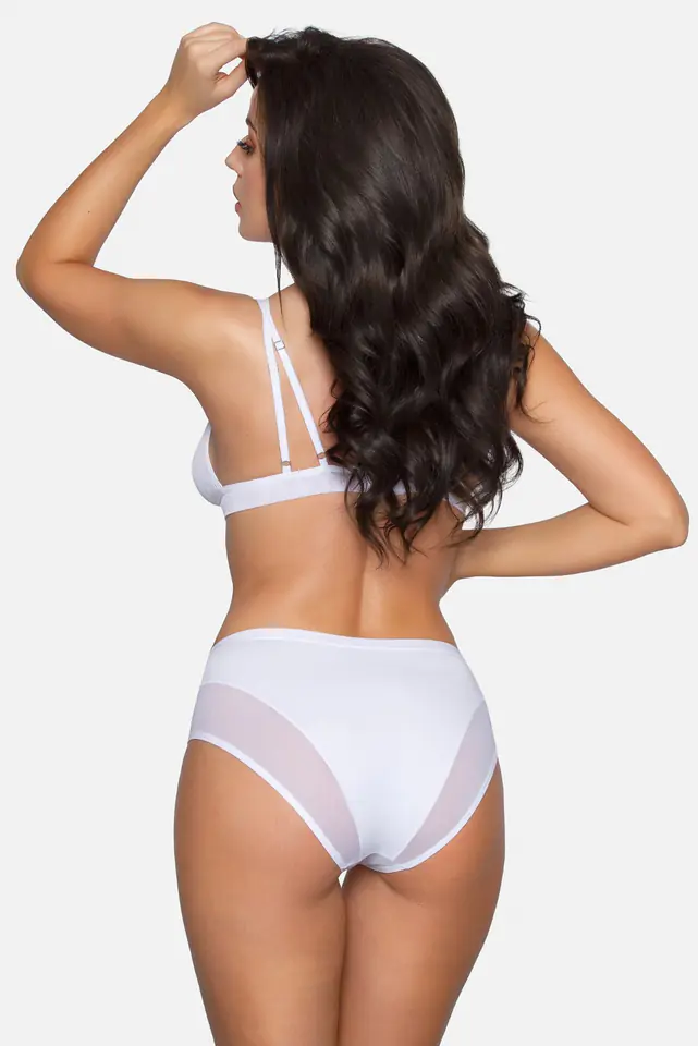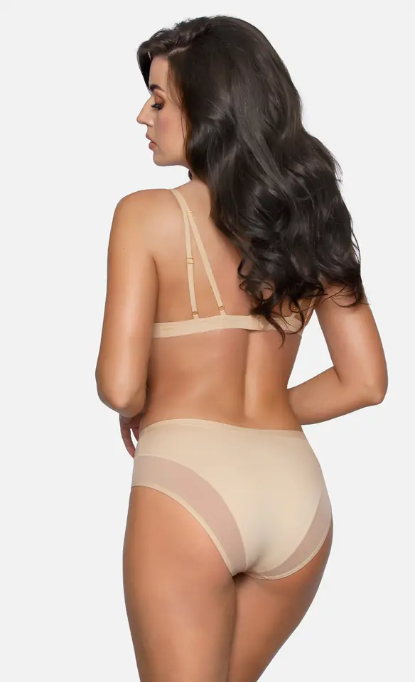 Elegancie figi damskie z dodatkiem tiulu. Boczne prześwitujące elementy wysmuklają optycznie uda oraz zaokrąglają biodra. Delikatna, a jednocześnie wytrzymała bawełna. Skład: 92% bawełna, 8% elastan.