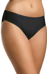 Figi idealnie dopasowane do ciała. Nogawki z tyłu wykończone koronką, płaskie i bezszwowe wykończenie nogawek. Figi wykonane z elastycznej dzianiny o strukturze mikrooczek. Unikalna, oddychająca struktura.Skład: 85% poliamid, 15% elastan