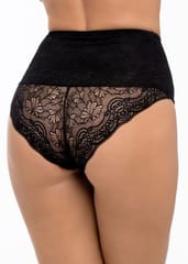 Eleganckie figi z wysokim stanem. Koronka z ażurowym wykończeniem dodaje im ponadczasowej elegancji a dodatkowo jest mięciutka w dotyku, a całe majtki są bardzo wygodne. Skład: 93% poliester, 7% elastan.