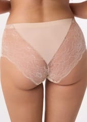 Figi z wysokim stanem łączą w sobie wyjątkowy komfort ze stylowym wyglądem oraz idealnie dopasowują się do sylwetki, podkreślając jej naturalne kształty. Tył wykonany z koronki o motywie kwiatowym. Skład: 85% poliamid, 15% elastan.