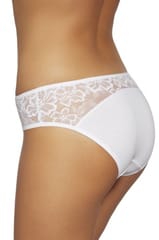 Subtelne figi wykonane z połączenia kwiecistej, elastycznej koronki i gładkiej bawełny. Góra koronkowa, z lekkim efektem prześwitu. Dół kryjący, zdobiony kokardką z przodu. Skład: 95% bawełna, 5% elastan.
