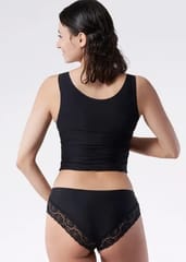 Śliczne figi z koronkowym wykończeniem na pośladkach. Z przodu zupełnie gładkie. Bezuciskowe. Do wyboru w kilku bardzo ładnych kolorach. Skład: 89% poliamid, 10% elastan, 1% bawełna.