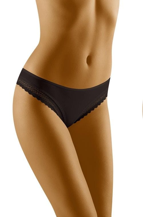 Prawdziwa perełka pośród bieliźnianych propozycji. Eleganckie, pięknie skrojone figi, zwieńczone śliczną koronką. Ta (dla odmiany) zmysłowo pnie się po pośladkach, czarując spojrzenie. Przód gładki, jedynie z koronkową lamówką wokół ud. Fason typu "biodrówka" - sexy! Figi zdecydowanie warte polecenia! Skład: 90% bawełna, 10% elastan.