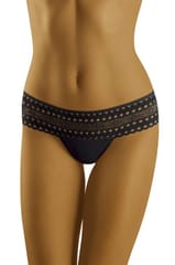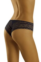 Bawełniane figi typu midi wykonane z efektownej, ażurowej koronki. Krój brazylijski, kusząco podkreśla pośladki. Skład: 90% bawełna, 7% elastan, 3% poliamid.