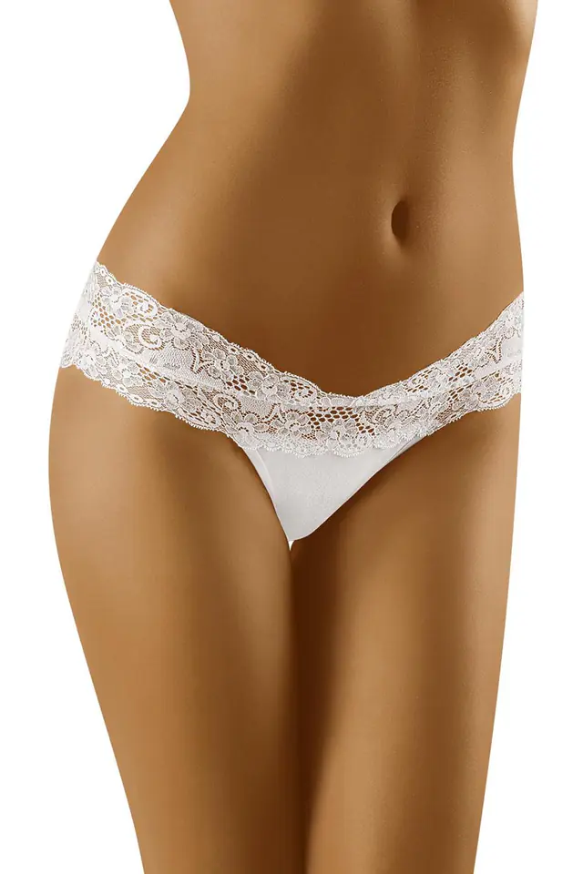 Kuszące figi z nieco obniżoną linią, które wyglądają po prostu wspaniale. Bielizna na biodrach zmysłowo układa się w kształt litery "v", co sprawia, że nogi wydają się dłuższe, a biodra bardziej sexy. Delikatna koronka w pięknych, kwiecistych ornamentach, stylowa. Prawdziwy bestseller! Skład: 90% bawełna, 7% elastan, 3% poliamid.