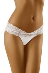 Kuszące figi z nieco obniżoną linią, które wyglądają po prostu wspaniale. Bielizna na biodrach zmysłowo układa się w kształt litery "v", co sprawia, że nogi wydają się dłuższe, a biodra bardziej sexy. Delikatna koronka w pięknych, kwiecistych ornamentach, stylowa. Prawdziwy bestseller! Skład: 90% bawełna, 7% elastan, 3% poliamid.