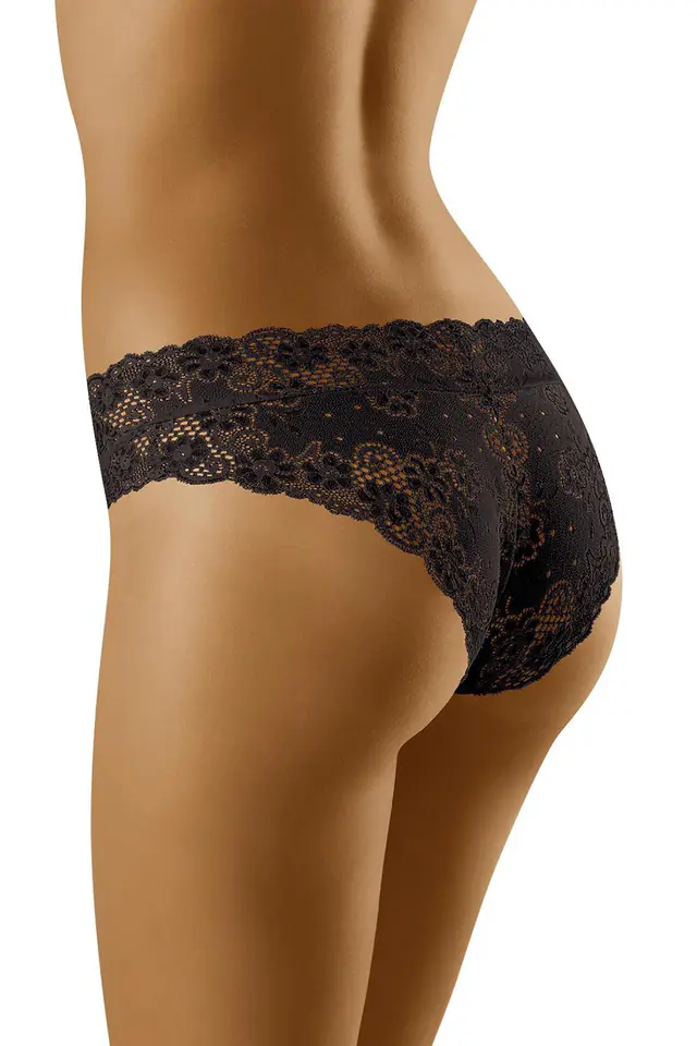 Kuszące figi z nieco obniżoną linią, które wyglądają po prostu wspaniale. Bielizna na biodrach zmysłowo układa się w kształt litery "v", co sprawia, że nogi wydają się dłuższe, a biodra bardziej sexy. Delikatna koronka w pięknych, kwiecistych ornamentach, stylowa. Prawdziwy bestseller! Skład: 90% bawełna, 7% elastan, 3% poliamid.