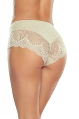 Eleganckie majtki o podwyższonym stanie z podwójną warstwą materiału z przodu, która subtelnie modeluje brzuch. Miękka koronka po bokach i z tyłu dodaje kobiecości, a jej płaskie wykończenie sprawia, że nie odznacza się. Skład:Poliamid 80%, Elastan 20%