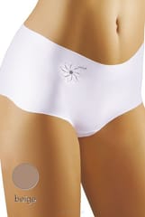 Szorty damskie bezszwowe z mikrofibry, cięte laserowo, z boku ozdobny nadruk. Skład: 80% Poliamid,.6% Elastan.