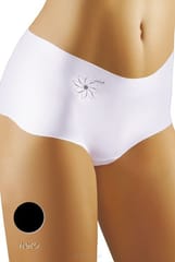Szorty damskie bezszwowe z mikrofibry, cięte laserowo, z boku ozdobny nadruk.
