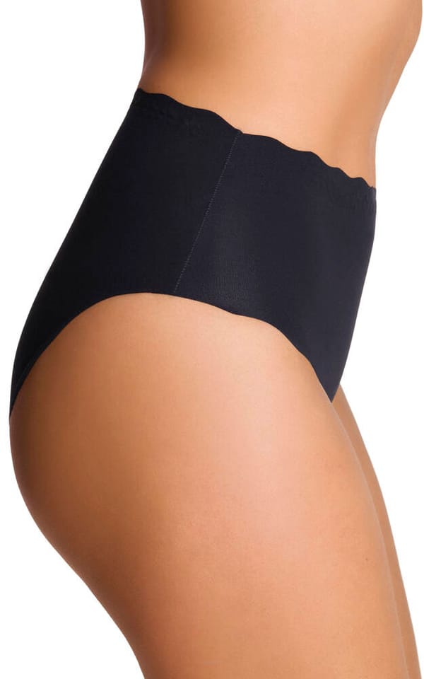 Wysokie, bezszwowe, korygujące figi damskie, cięte laserowo z ultracienkim wykończeniem brzegów w technologii INVISIBLE_LINE, z boku napis Dixi. Łagodnie ściagają i modelują sylwetkę, w pasie podszyte silikonem. Skład: 58% poliamid, 42% elastan.