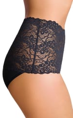 Figi damskie pełne, wysokie, wykonane z ażurowej koronki. Lekko prześwitujące. Skład: 94% bawełna, 6% elastan.