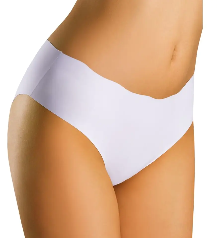 Gładkie figi uszyte z niezwykle miękkiej mikrofibry. Cięte laserowo, nie odznaczają się pod ubraniem. W pasie od wewnątrz dodano silikonowe wstawki stabilizujące bieliznę. Materiał: 80% poliamid, 20% elastan.