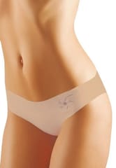 Figi damskie bezszwowe, cięte laserowo, z boku ozdobny nadruk. Skład: 80% poliamid, 20% elastan.