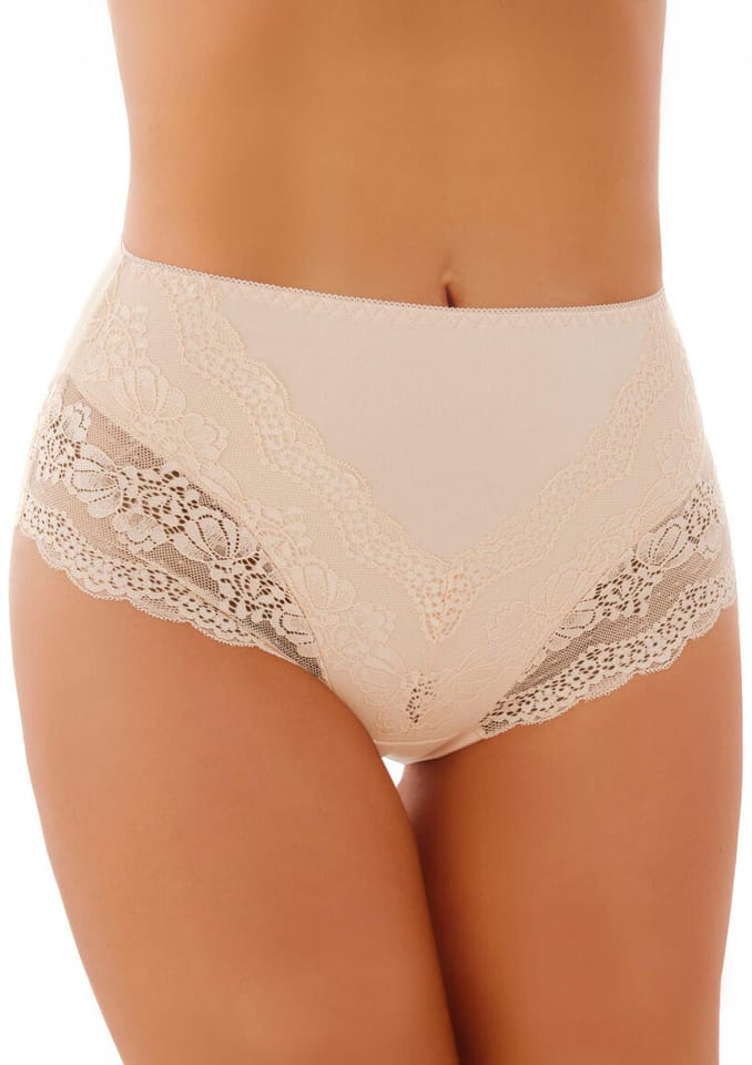 Figi bawełniane z podwyższonym stanem zapewniają idealne dopasowanie oraz lekko modelują sylwetkę. Subtelna koronka po bokach dodaje im lekkości i elegancji. Skład: 92% bawełna, 8% elastan. Koronka: 54,7% nylon, 27,9% poliester, 17,4% spandex.