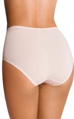 Figi damskie pełne, z wysokim stanem, wykonane z miękkiej dzianiny oraz koronki. Przód podszyty w środkowej części tkaniną modelującą brzuch. Skład: 94% bawełna, 6% elastan; koronka: 92% poliamid, 8% lycra.