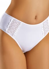 Figi damskie wykonane z wysokiej jakości delikatnej bawełny z dodatkiem elastanu. Ozdobione efektowną koronką. Idealnie dopasowują się do sylwetki. Skład: 94% Bawełna ,6% Elastan.