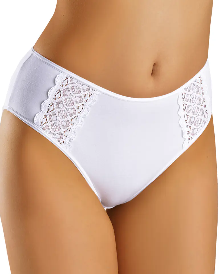 Figi damskie wykonane z wysokiej jakości delikatnej bawełny z dodatkiem elastanu. Ozdobione efektowną koronką. Idealnie dopasowują się do sylwetki. Skład: 94% Bawełna ,6% Elastan.