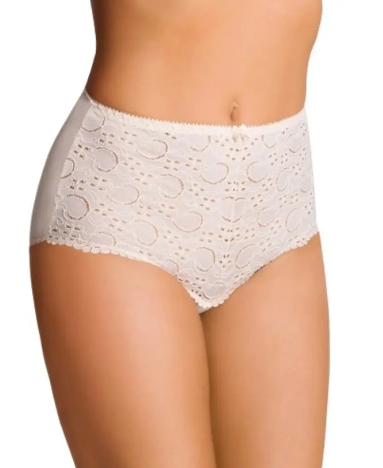 Eleganckie figi damskie wykonane z bawełny. Wykończone wyjątkową koronką. Tył w całości jest bawełniany. Skład: 94% bawełna 6% elastan.