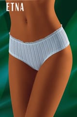 Etna czyli wygodne figi zwieńczone drobnym wzorem. W tej odsłonie niezwykle modne w tym sezonie paski - smukłe, pionowe, eleganckie... Przy talii delikatna koronka.