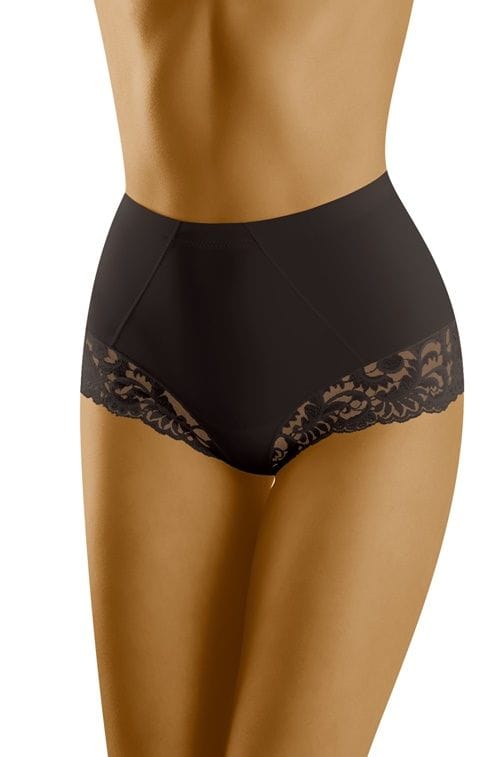Bielizna do zadań specjalnych, w wersji na co dzień. Oto delikatnie korygujące figi, o nieco wyższym fasonie, ze śliczną koronkową lamówką wokół ud. Lamówka optycznie wydłuża nogi. Skład: 59% poliamid, 41% elastan.