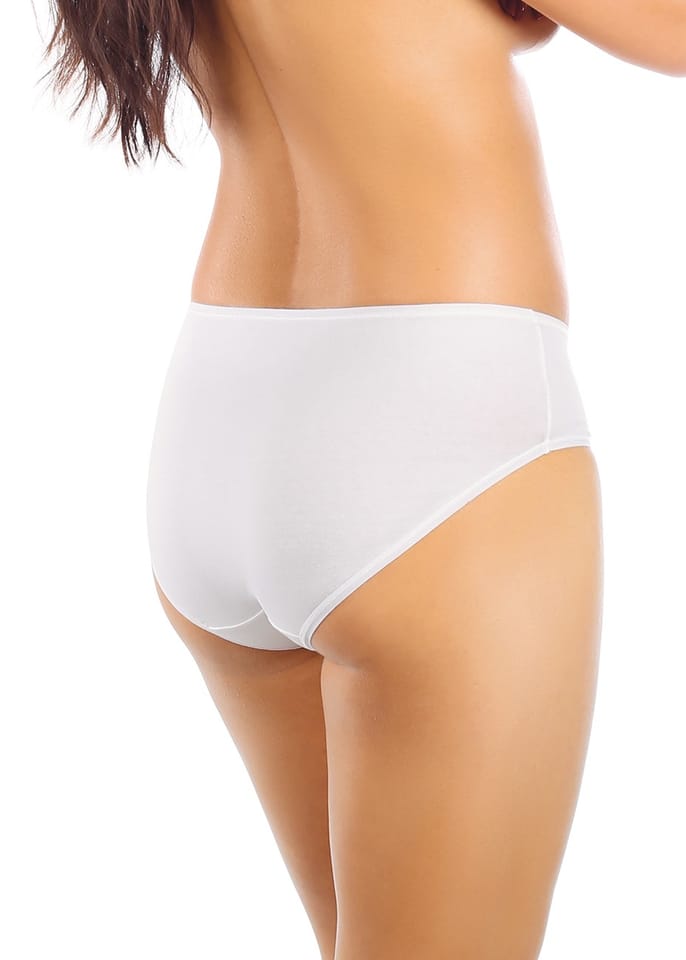 Figi damskie wykonane z wysokiej jakości bawełny. Na przodzie wstawki z koronki, tył bawełniany. Skład: 95% bawełna, 5% elastan.