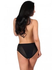 Figi damskie o klasycznym kroju, wykonane z delikatnej mikrofibry połączonej z siateczką. Biodra zabudowane, zdobione wstawkami z efektownej koronki. Tył z podwójnej siateczki i mikrofibry. Skład: 85% poliamid, 15% elastan.