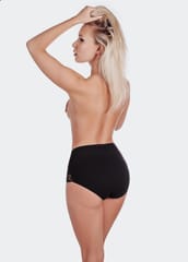 Figi damskie z gładkiej bawełny z wysoko zabudowanymi biodrami, zaprojektowane z myślą o codziennej wygodzie. Nogawki wykończone ażurową koronką o kwiatowym motywie. Nie uciskają i dopasowują się do sylwetki. Skład: 95% bawełna, 5% elastan.