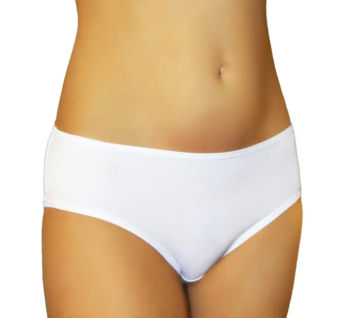 Figi damskie typu midi - bikini, z bawełny i elastanu 5%. Obszyte płaską, nieodznaczającą się pod ubraniem gumką. Pakowane po dwie sztuki.