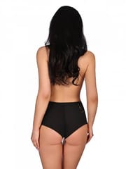 Figi damskie wykonane efektownej koronki o kwiatowym motywie. W pasie płaska gumka. Tył z podwójnej siateczki. Skład: 85% poliamid, 15% elastan.