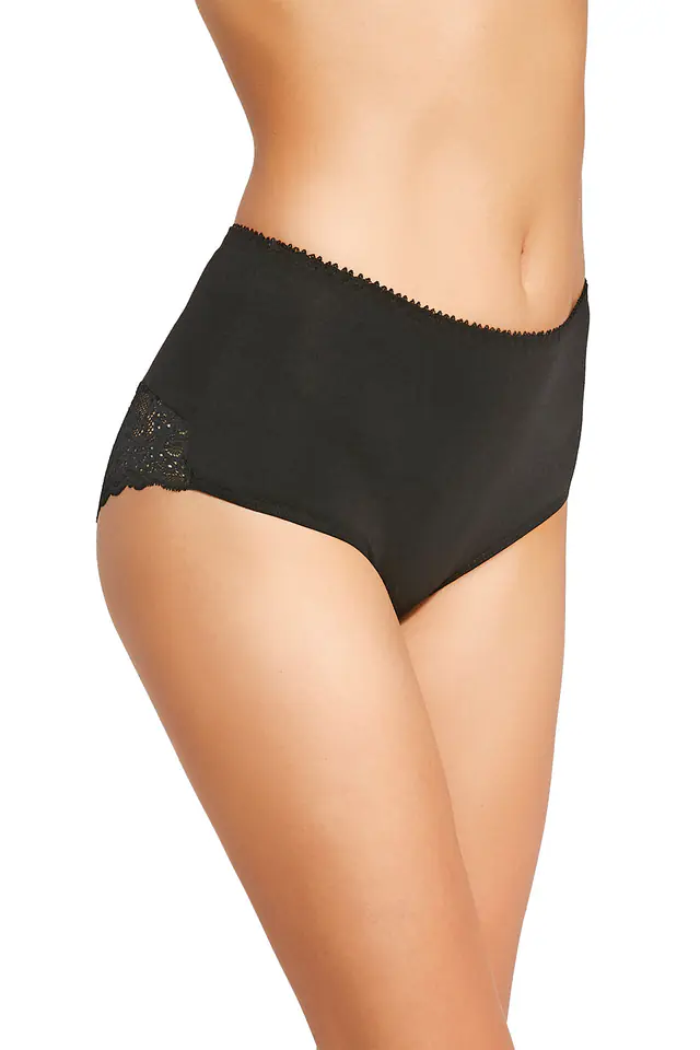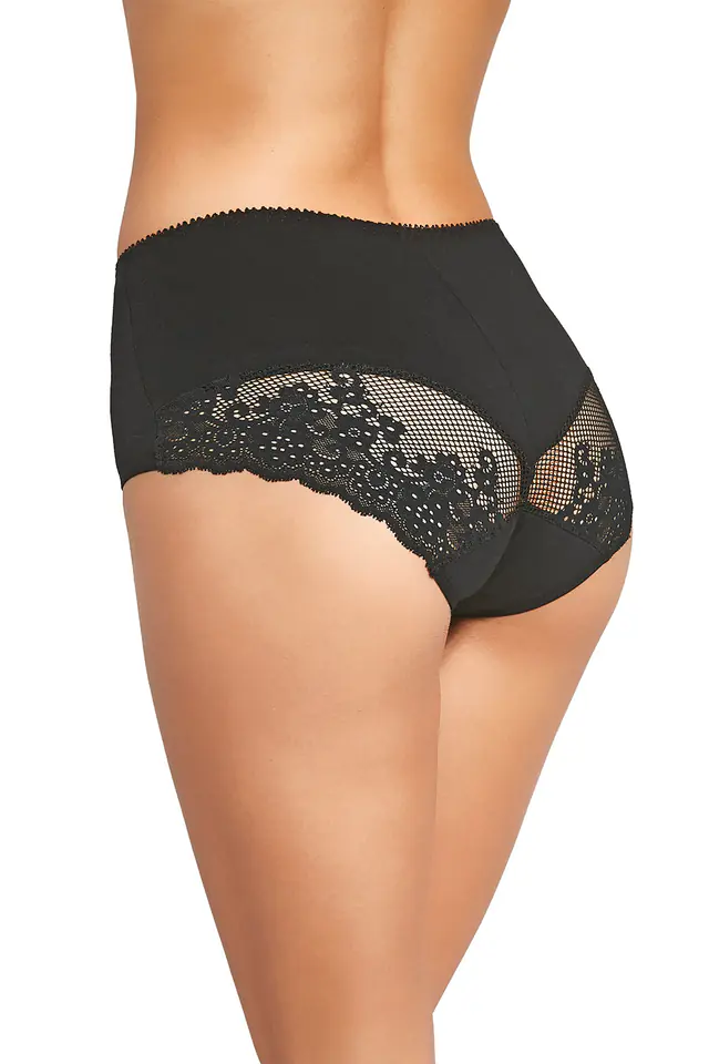 Zabudowane figi damskie z wysokim stanem. Tył wykończony ażurową koronką. Figi wykonane z wysokiej jakości bawełny. Skład: 95% bawełna, 5% elastan.