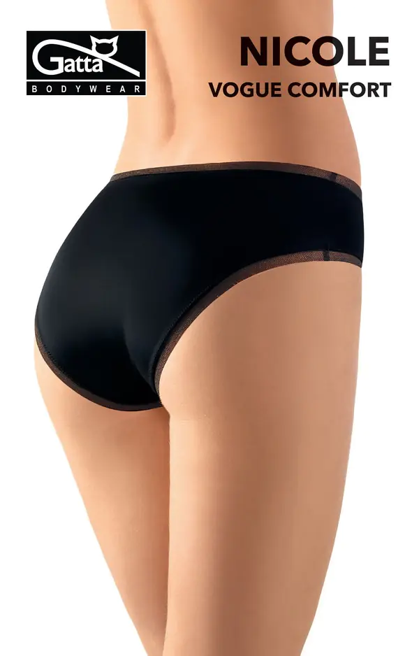 Figi damskie wykonane z cienkiej dzianiny. Brzegi obszyte ażurową gumką. Płasko wykończone, bezuciskowe, nie odznaczają się pod ubraniem.