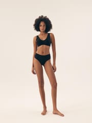Figi damskie z gładkiej, delikatnej mikrofibry z delikatnie zabudowanymi biodrami. Boki ozdobione wstawkami z siateczki, pas płasko wykończony. Pakowane po 2 szt. Skład: 85% poliamid, 15% elastan.