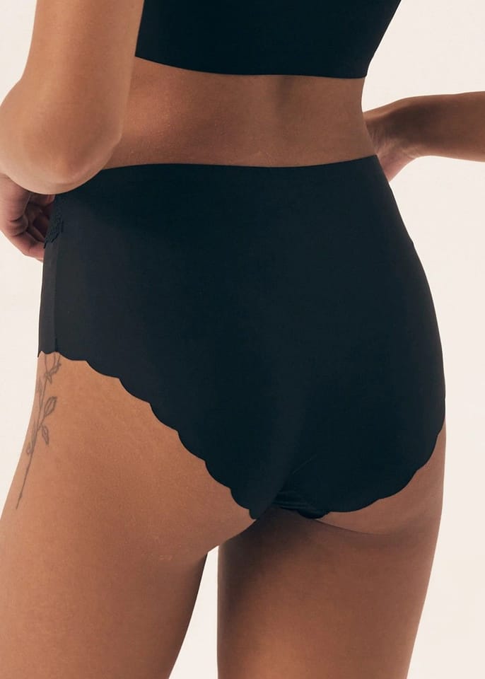 Niewidoczne pod ubraniem dzięki laserowo ciętym brzegom, funkcjonalne a jednocześnie pełna subtelnego stylu. Ozdobna koronka w pasie, bawełniana wkładka w kroku. W opakowaniu 2 sztuki. Skład: 88% poliamid 12% elastan, Koronka: 92% poliamid 8% elastan.