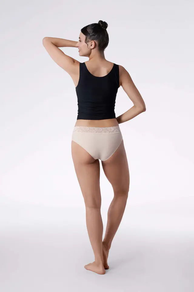 Gładkie figi ozdobione koronką w górnej części. Stanowią perfekcyjne połączenie prostoty i kobiecego wdzięku. Miękkie i elastyczne. Wykonane w technologii Invisible-Line, dzięki której są kompletnie niewidoczne pod ubraniem. W dolnej części bawełniana wkładka. Skład: 89% poliamid, 10% elastan, 1% bawełna.