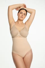 Figi z wysoką talią wykonane w technologii bezszwowej, które wyszczuplają i modelują sylwetkę zapewniając komfort noszenia. Silikonowy pas zapobiega zsuwaniu się. Skład: 80% poliamid, 20% elastan.