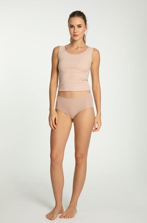 Figi damskie bawełniane z delikatnej bawełny, szersze, pełniejsze boki, krój maxi. Cięte laserowo, bezszwoweniewidoczne pod dopasowaną odzieżą. Skład: 85% bawełna, 15% elastan.