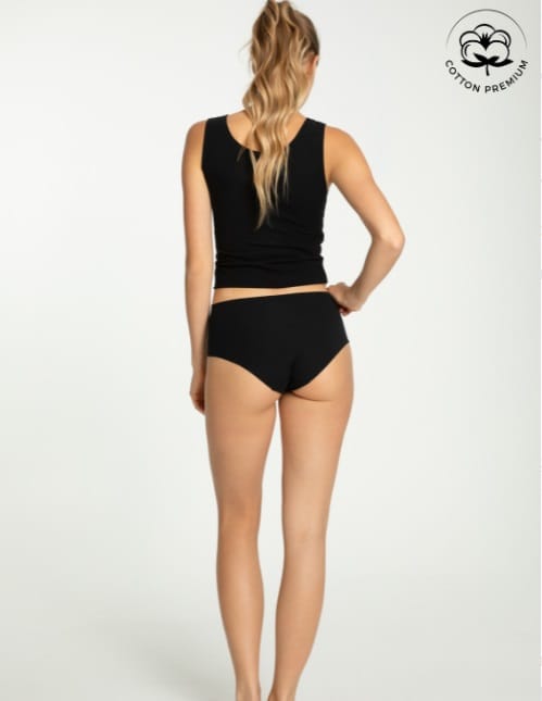 Figi damskie bawełniane z delikatnej bawełny, szersze, pełniejsze boki, krój maxi. Cięte laserowo, bezszwoweniewidoczne pod dopasowaną odzieżą. Skład: 85% bawełna, 15% elastan.