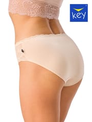Figi damskie midi bikini z wysokiej jakości dzianiny pochodzenia roślinnego o delikatnym połysku jedwabiu. W pasie wykończone efektowną, ażurową koronką. Pakowane po 2 szt. Skład: 95% viscose, 5% elastan.